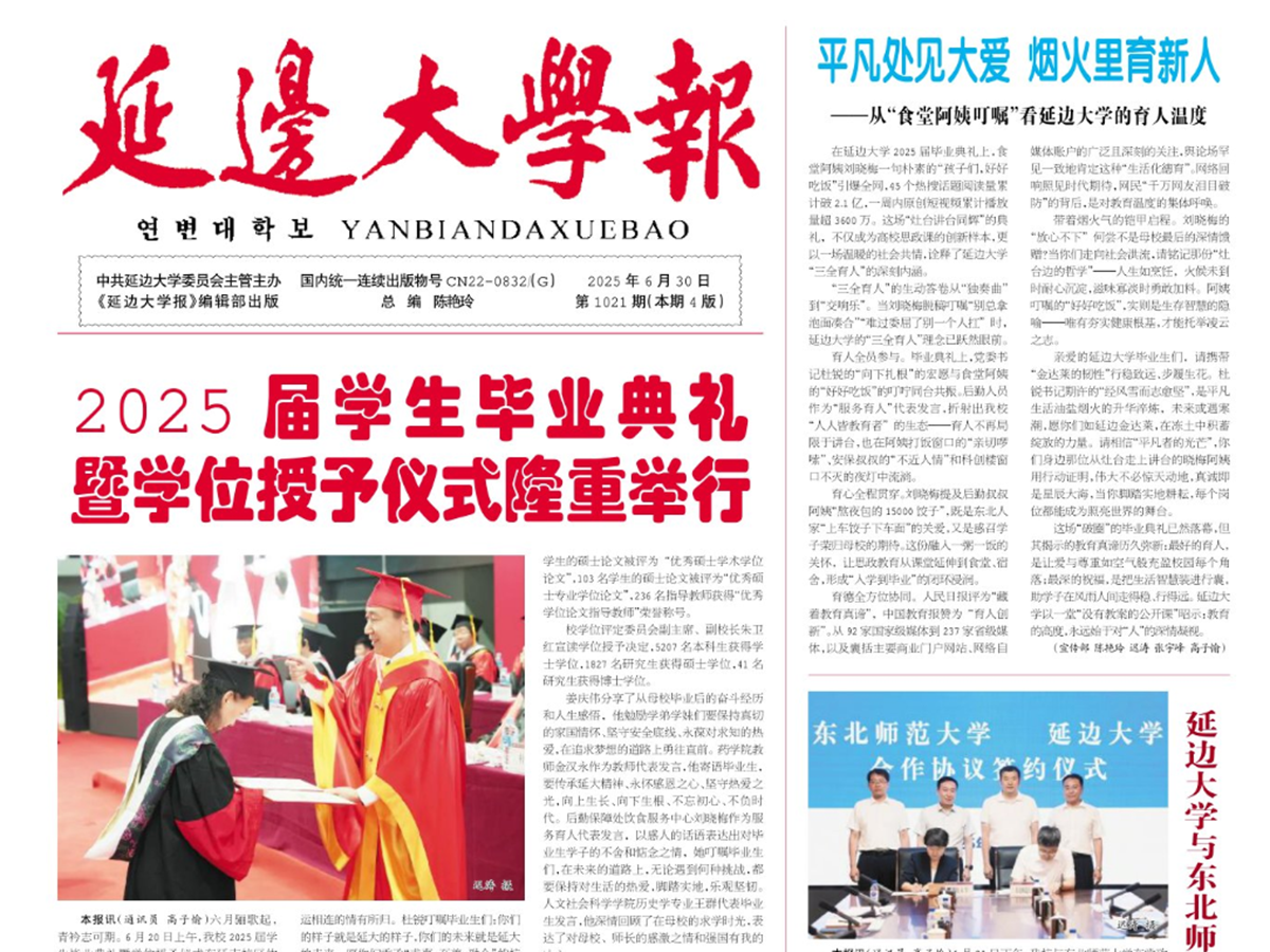 头条新闻 延边大学两个学院获批吉林省第二批专业特色学院 (通讯员 高子愉)近日,吉林省教育厅印发《关于公布第二批省级专业特色学院建设项目名单的通知》,经高校自主申报、材料审核、专家论证,全省35个学院被确定为第二批省级专业特色学院建设项目,延边大学药学院和体育学院成功入选。此次入选是学校在学科布局优化、教学改革创新、产学研融合发展等方面持续深耕的重要体现。学校将以此为契机,进一步聚焦特色学科建设核心任务,加大资源投入力度,深化教育教学改革,完善人才培养...
