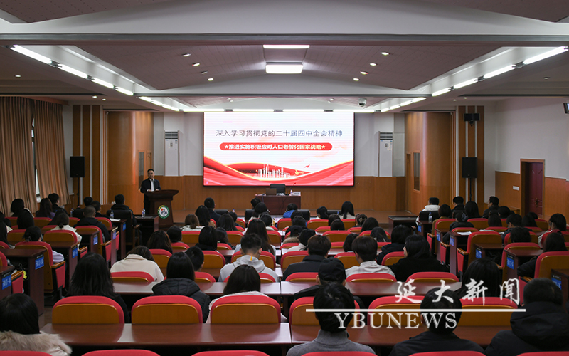 头条新闻 延边州委常委、副州长胡福君来延边大学作深入学习贯彻党的二十届四中全会精神专题讲座 (马克思主义学院供稿)11月8日上午,延边州委常委、副州长胡福君应邀来我校,在求真楼7楼学术报告厅作“深入学习贯彻党的二十届四中全会精神推进实施积极应对人口老龄化国家战略”专题讲座,讲座由副校长陶建钟主持。胡福君结合翔实数据与典型案例,深入剖析我国及国际社会人口老龄化面临的新形势,系统阐释了我国应对人口老龄化的战略举措与实践路径。他讲述,人口老龄化是文明进步的体现,关乎社会的可持续发展,必须持续加...