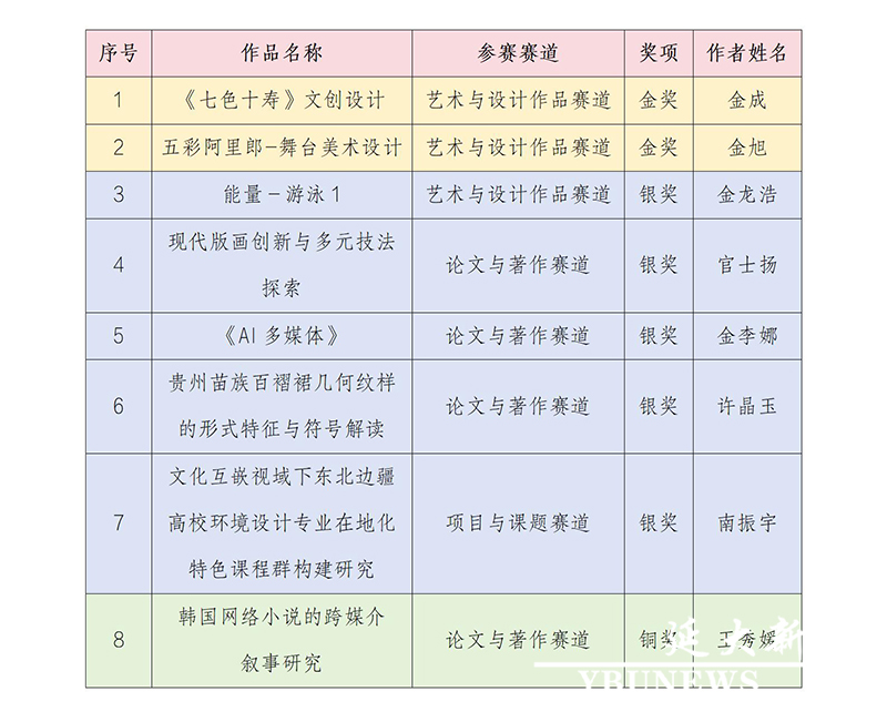 我校教师获得佳绩是学校持续推进“以赛促学、以赛促教、以赛促强”教学改革的成果体现,学校将以此为契机,紧密围绕办学定位,以课程建设与学术研究为着力点,进一步强化教师专业发展支撑体系,促进学生全面成长,为推动具有延边特色的设计教育与区域实践深度融合贡献延大力量。