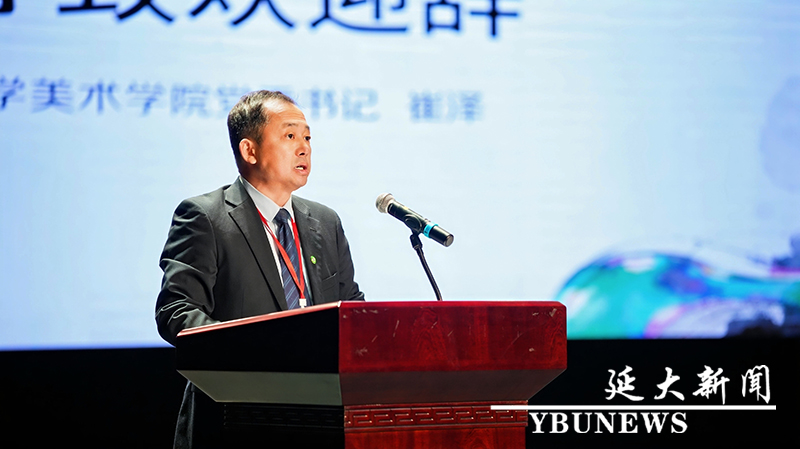 副校长刘岩出席开幕式并致辞,他表示,学校作为“国门高校”和“双一流”建设高校,始终立足东北亚地缘优势深耕民族与区域文化研究,强调艺术在促进国家间理解与合作中的独特价值,期待与会学者共探交流新路径、为区域文化繁荣贡献力量;美术学院党委书记崔泽致欢迎辞,他介绍,美术学院始终依托地缘与民族文化资源,以“传承民族艺术、推动跨文化交流”为使命,致力于推动形成民族特色与国际视野并重的发展格局;吉林省美术家协会副主席、长春师范大学美术学院院长曲鸽作为嘉宾代表致辞,对延边大学在艺术教育与研究领域的重要贡献给予充分肯定。