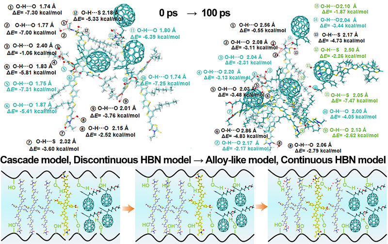 (科学技术处供稿)近日,我校理学院孙光延教授团队在有机太阳能电池研究领域取得新进展。团队青年骨干李明阳副教授(第一通讯作者)、任悦老师(第一作者)在《Advanced Science》上发表研究成果。该研究历经三年深入探索,首次系统揭示了三元有机太阳能电池中微量水分子通过构建动态氢键网络,从而精确调控活性层微观形貌与器件性能的作用机制。
