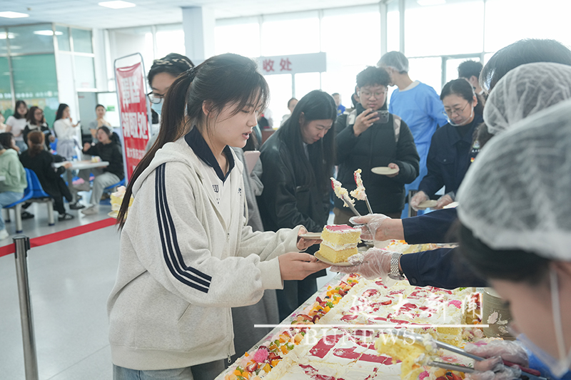 校党委书记杜锐,副校长张学武、陶建钟,校党委常委、后勤保障处党委书记兼处长金永灿及相关职能部门、学院负责人分别来到各食堂,切开蛋糕并为师生分发。品尝着美味的蛋糕,师生们脸上洋溢着愉快的笑容。“学校很用心,蛋糕很好吃”“这个活动很有意义,在学校生日这天吃蛋糕,特别有仪式感。”大家纷纷说道。