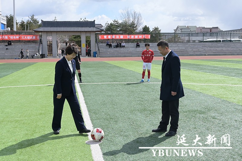 (校团委供稿)4月11日上午,延边大学2026年“红石榴杯”体育文化节暨第十六届“校长杯”三大球比赛在泛海体育场开幕。校党委副书记于金欢、副校长朱卫红出席开幕式。