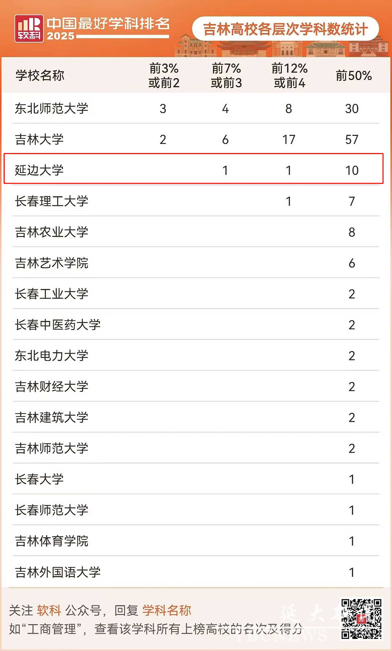 再创新高!延边大学10个学科上榜2025软科中国最好学科