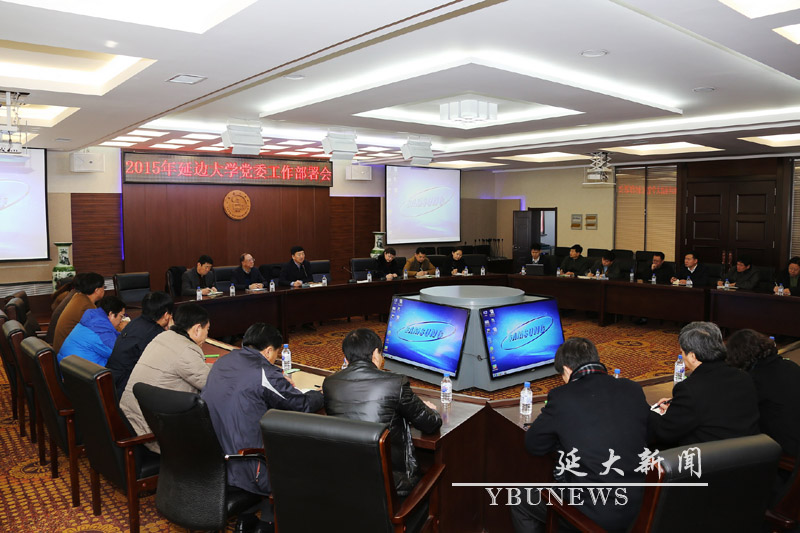 金雄强调,2015年,学校党委工作的总体思路和工作要求是:高举中国特色社会主义伟大旗帜,深入学习贯彻党的十八大、十八届三中、四中全会精神和习近平总书记系列重要讲话精神,坚持立德树人这一根本任务和党要管党、从严治党这条主线,自觉贯彻思想建党、制度治党的党建思想,突出党对意识形态工作的绝对领导、巩固拓展党的群众路线教育实践活动成果、加强思想政治教育、推进组织工作创新、深化党风廉政建设和反腐败斗争的重点工作,全面加强党的建设,全面深化学校各项改革,全力推进依法治校,全力推动工作落实,为完成学校全年教学科研等中心任务提供坚强保证。
