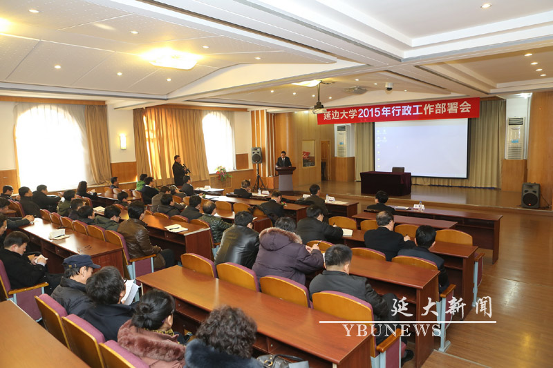 (记者 杜有)1月23日下午,我校在综合楼七楼学术报告厅召开了行政工作部署会。校长朴永浩、副校长盖同祥、崔炯谟、张寿、陈铁,学校党政管理部门、教学单位、教学辅助部门、科研部门及附属部门的副处级以上行政干部参加了会议。会议由校长朴永浩主持。