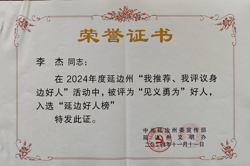 2024年5月16日,李杰同学在面对危及公民生命财产安全的紧急关头,临危不惧、挺身而出,用年轻的生命践行了舍己为人、不怕牺牲的崇高精神,最终光荣献身。延边朝鲜族自治州人民政府于2024年6月追授李杰“见义勇为先进个人”称号,延边大学团委追认李杰为中国共产主义青年团优秀团员,中共吉林省委宣传部于2024年7月授予“吉林好人”称号,延边大学追授李杰“延边大学优秀大学生”称号,2025年9月,党和国家功勋荣誉表彰工作委员会办公室追授李杰为烈士。