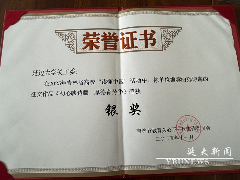 (校关工委供稿)日前,吉林省教育关心下一代工作委员会对全省高校2025年“读懂中国”活动开展情况进行表彰,我校选送的作品在评选活动中荣获8项殊荣,关工委荣获“最佳组织奖”,为学校赢得了荣誉。