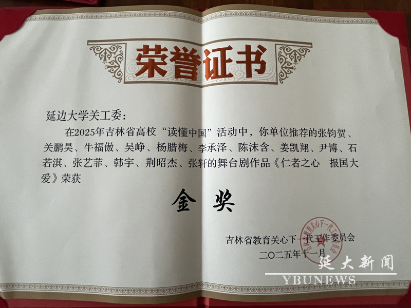 在吉林省高校2025年“读懂中国”评选活动中延边大学关工委斩获“最佳组织奖”等8项殊荣