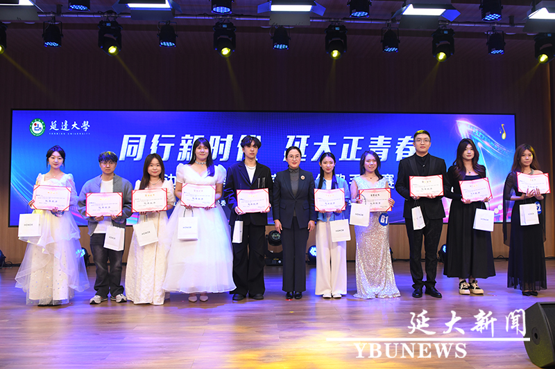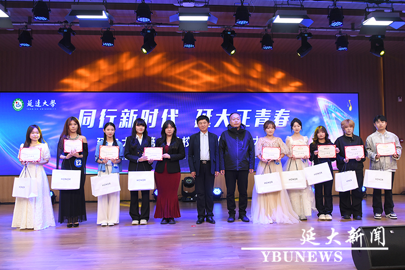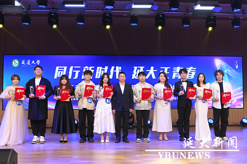 大赛自启动以来,共有来自全校18个学院(包含少数民族预科班)的300余名学生报名参赛。经过海选和晋级赛的层层选拔,最终20位选手晋级决赛。在决赛舞台上,选手们以精湛的演唱技艺唱响了新时代青年的奋进之歌,充分彰显了延大学子与时代同行的青春风采。经过两轮激烈角逐,付海城等10人获评“十佳歌手”,韩智元等10人获评“优秀歌手”,此外,通过线上投票,马骏驰等10人获评“人气歌手”。于金欢等与会领导为获奖选手颁奖。