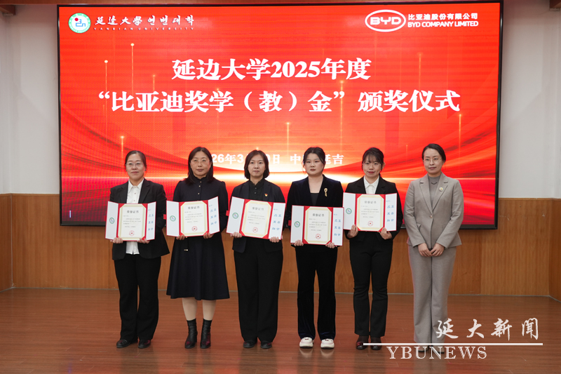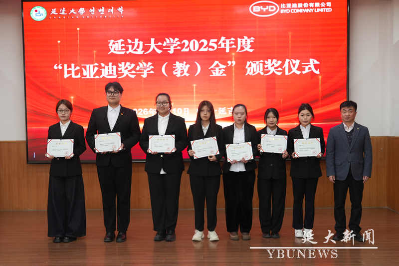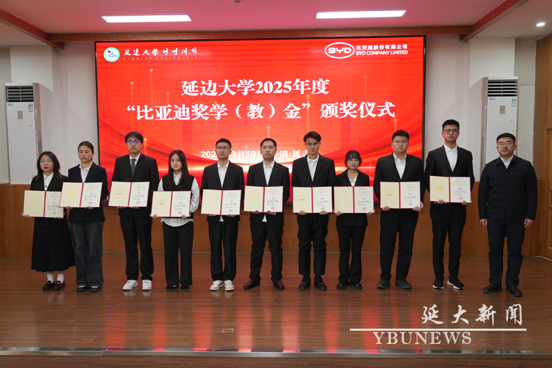 延边大学比亚迪奖学(教)金是由比亚迪股份有限公司2025年在我校捐资设立,以10年为期,每年捐赠60万元,重点资助工学院、外国语学院等单位的优秀学子和教师,旨在进一步激发我校青年学子、优秀教师投身科研创新的积极性,有力带动了一批优秀学生和青年教师脱颖而出,为加快推进学校“双一流”建设和事业高质量发展注入强劲动力。