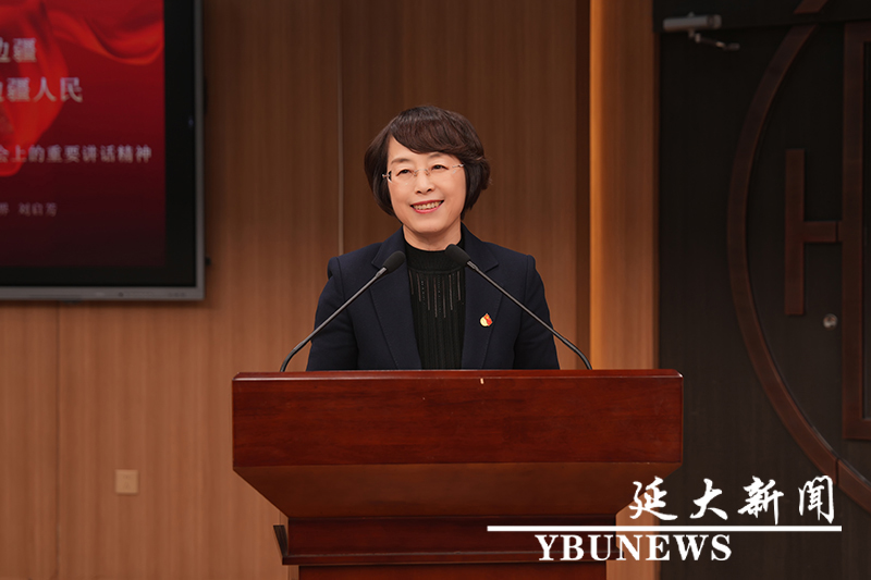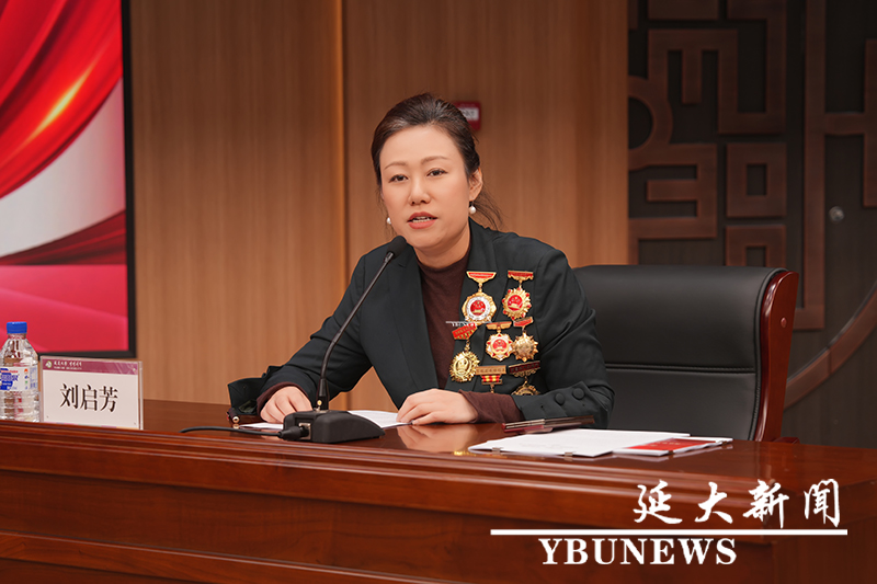 在报告中,刘启芳深情讲述了自己来到吉林大地投身边疆建设和公益行动的历程,她表示,延边大学作为“国门高校”,始终坚定扛牢教育固边、人才兴边、科技强边、产业富边、学术戍边、文化润边的使命担当,正是自身扎根边疆、建设边疆、服务边疆的广阔平台,未来自己也将同学校师生一道,以更加务实的举措助力边疆繁荣发展,为兴边富民作出新的更大贡献。