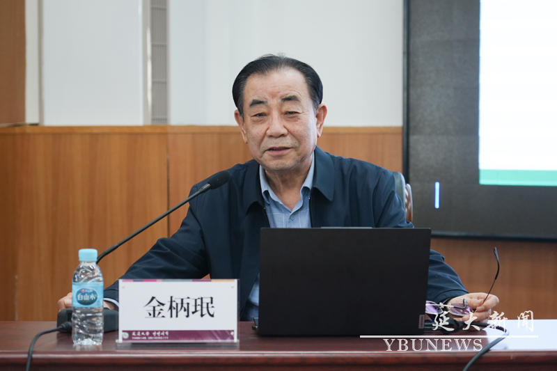 (通讯员 高子愉)4月22日下午,我校在延吉校区、珲春校区,以线上线下相结合的方式举行“求真大讲堂”系列学术讲座第一讲,特邀延边大学资深教授、原校长金柄珉作专题讲座,副校长朱卫红主持讲座。主会场设在求真楼7楼学术报告厅,师生代表现场聆听讲座。