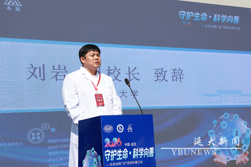 刘岩在致辞中表示,延边大学始终高度重视实验动物规范化管理、科研伦理体系建设与师生生命教育,坚持科学探索与伦理规范并重,创新发展与生命关怀同行,常态化开展科普教育与技能培训,让严谨求实、敬畏生命、人道科研的理念深深扎根校园,融入每一项科研实践。希望以此次活动为契机,进一步提升师生的科研素养与人文情怀,努力培养有原则、有情怀、有担当的新时代医学与生命科学人才,为国家医药健康事业高质量发展,贡献延大力量、书写延大担当。
